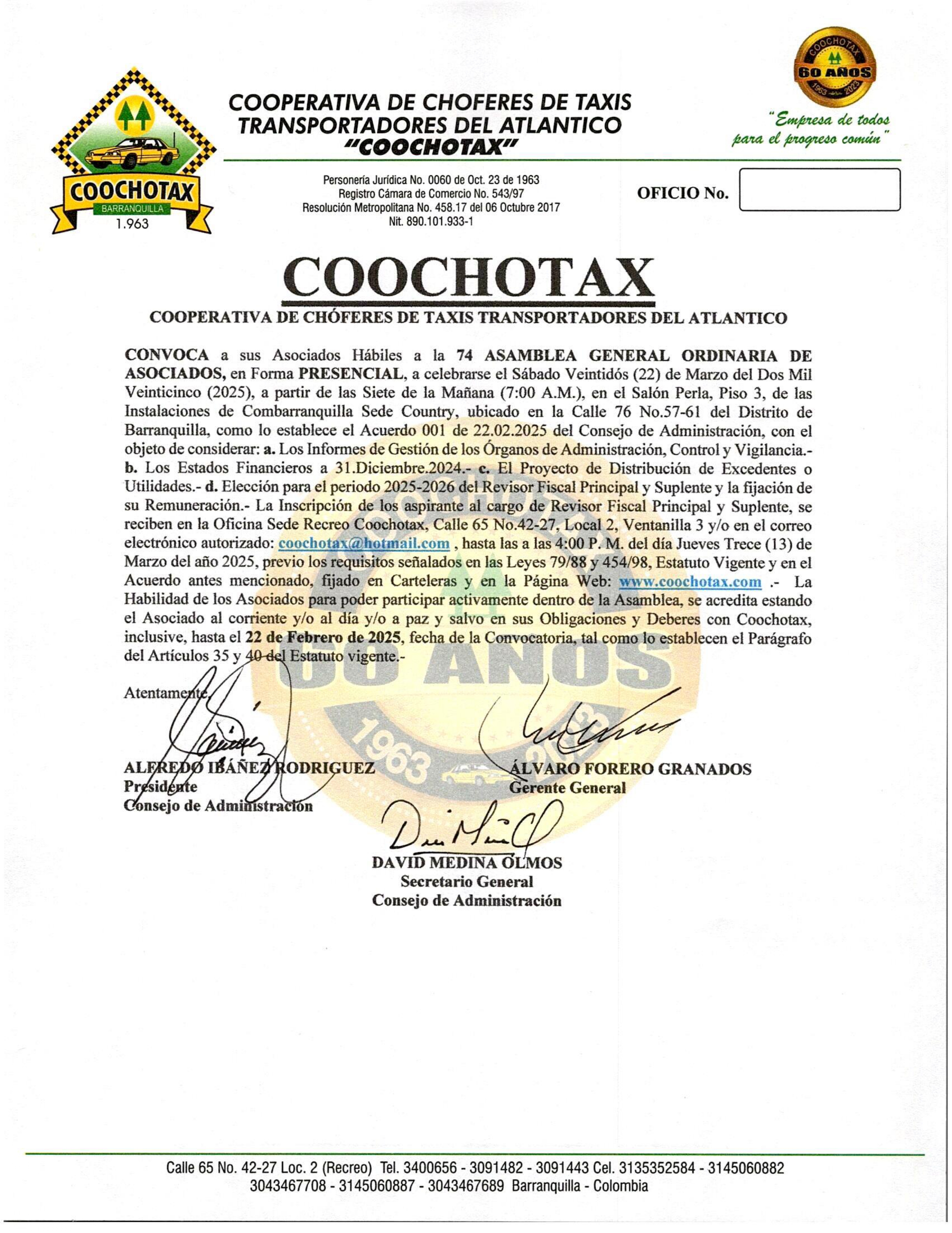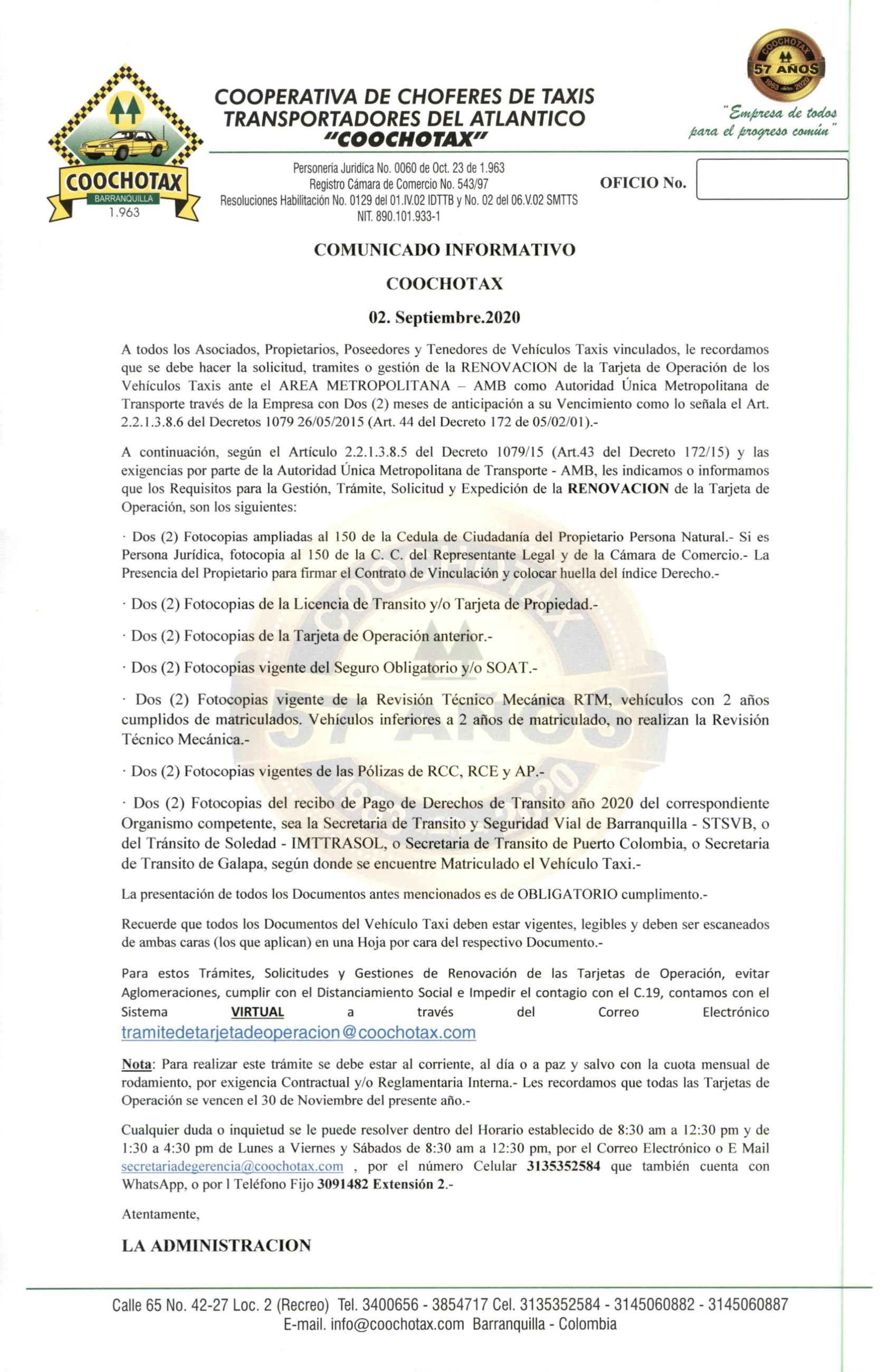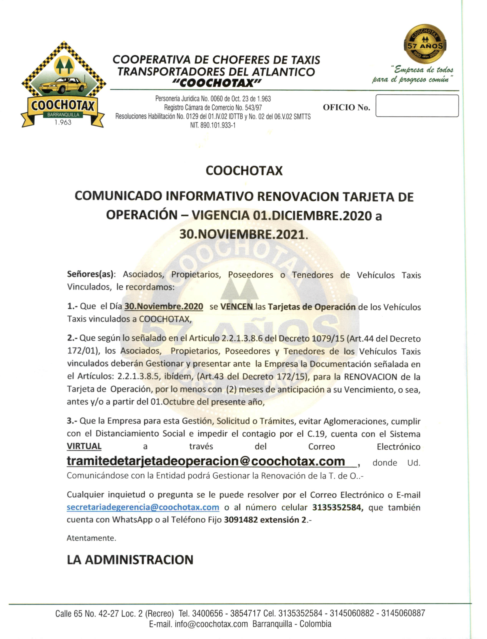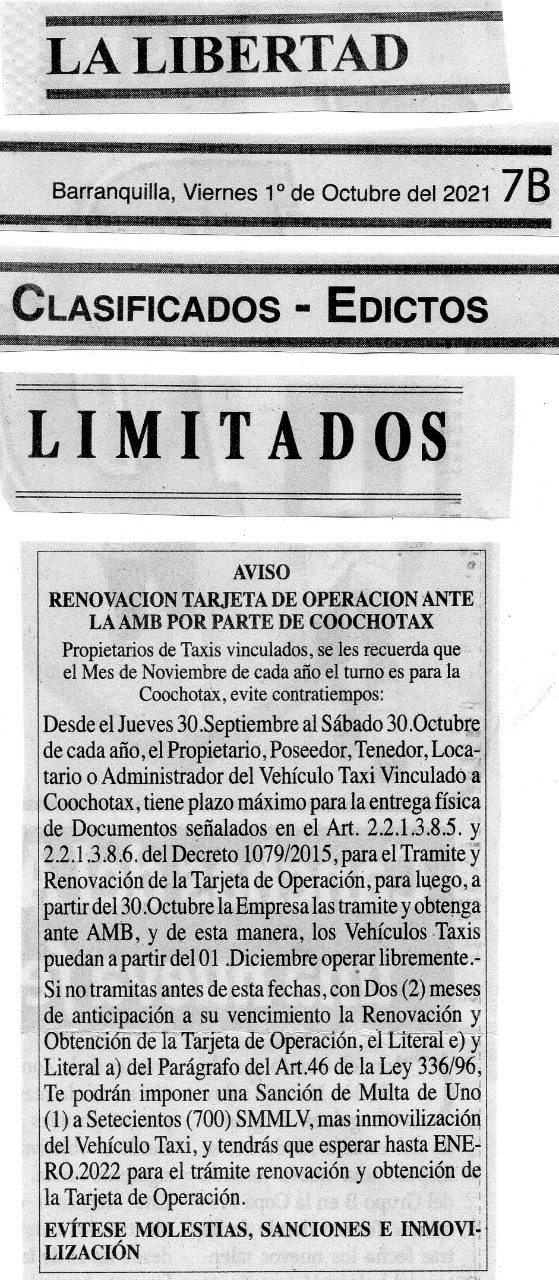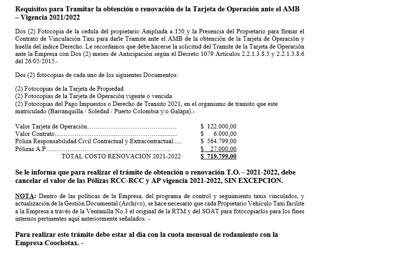 • COOCHOTAX, En la Carrera 43 No.75 - 144 Local 2, Teléfonos: 3048928 - 3045102, CELULAR: 3135352584 – 3145060887.-