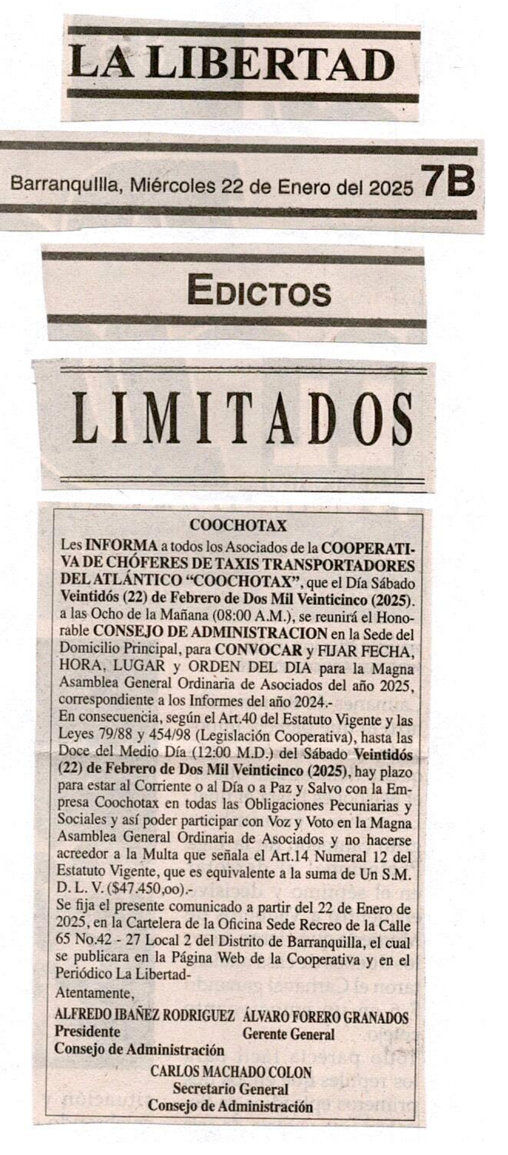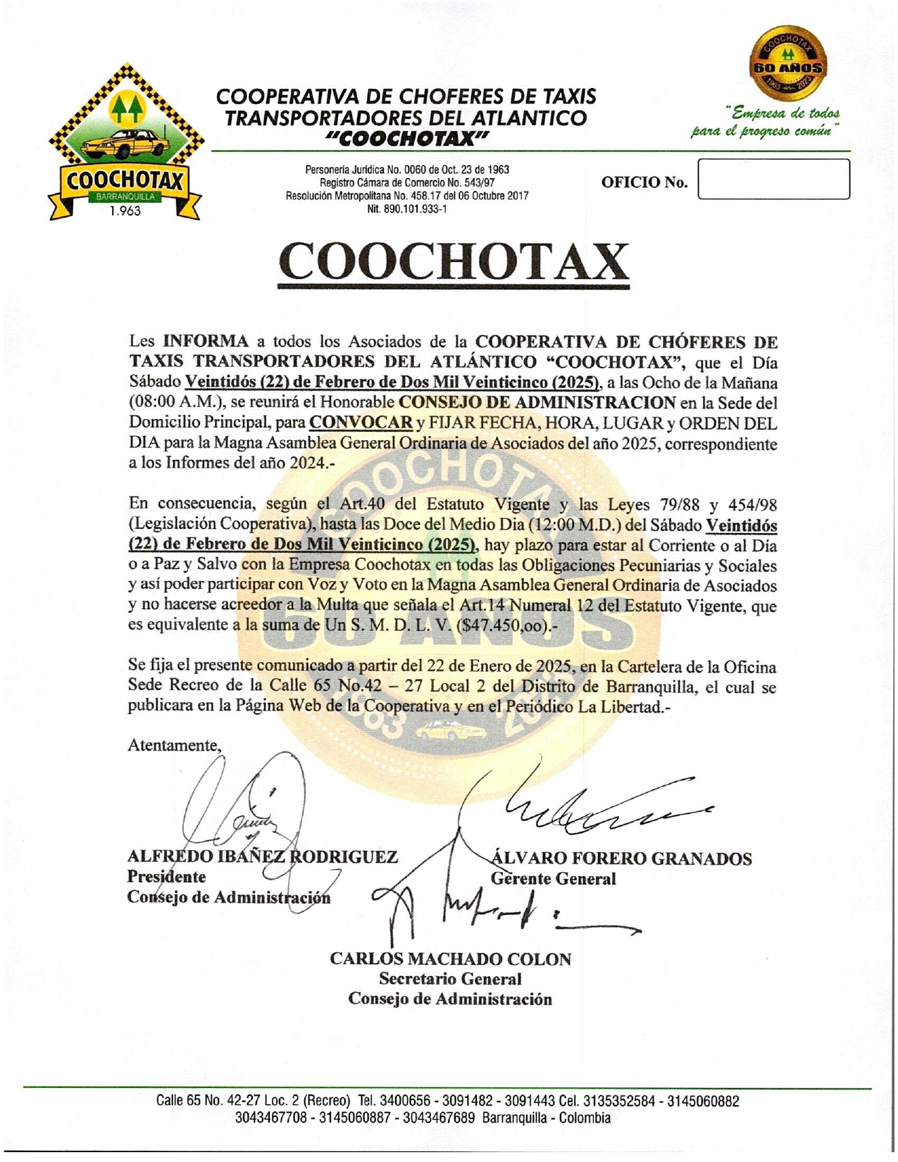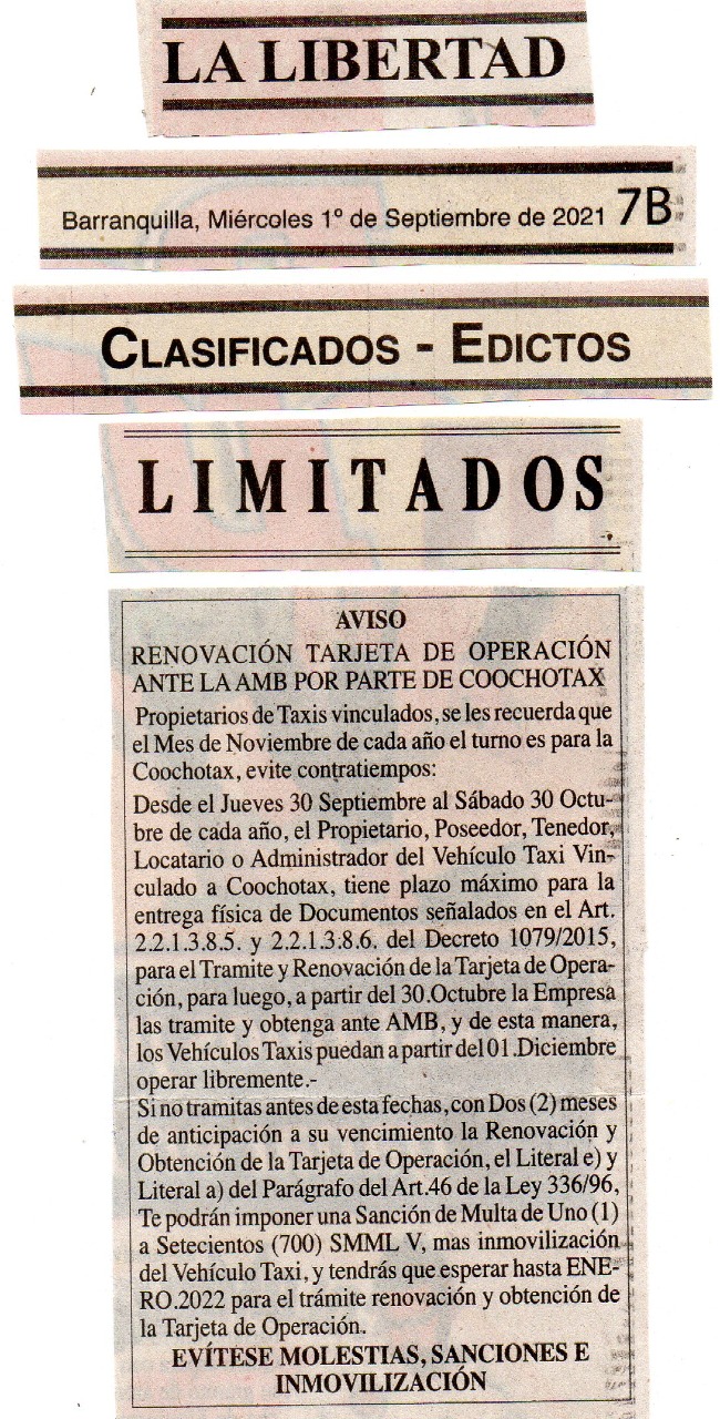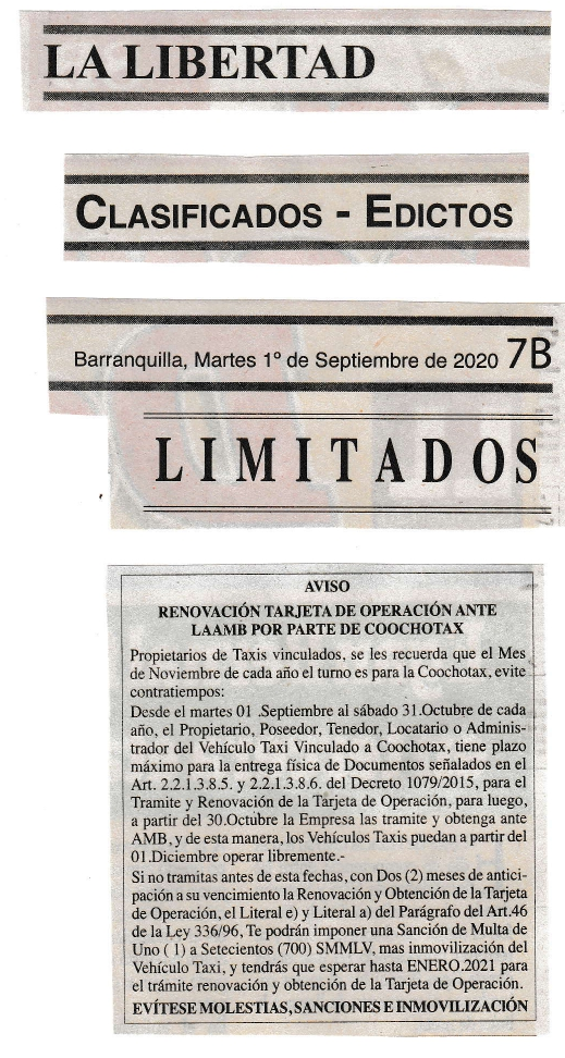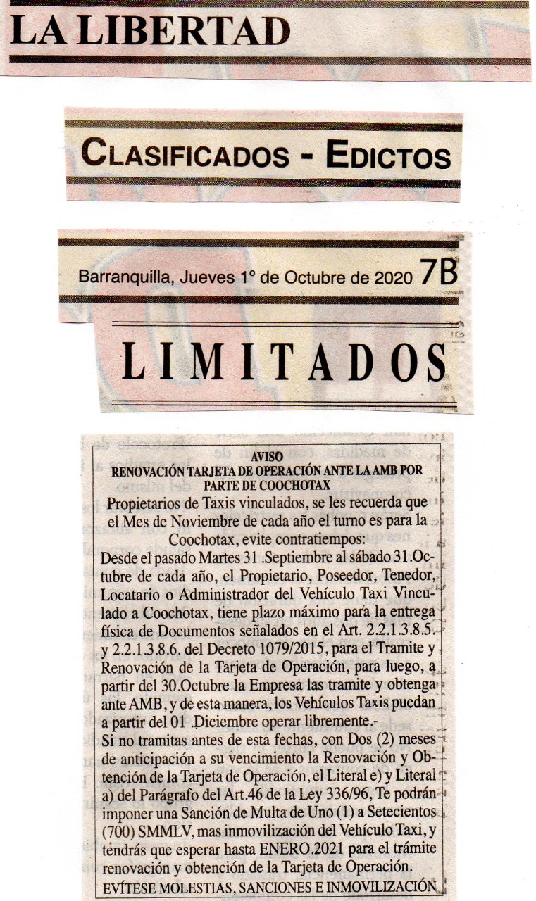• COOCHOTAX, En la Carrera 43 No.75 - 144 Local 2, Teléfonos: 3048928 - 3045102, CELULAR: 3135352584 – 3145060887.-